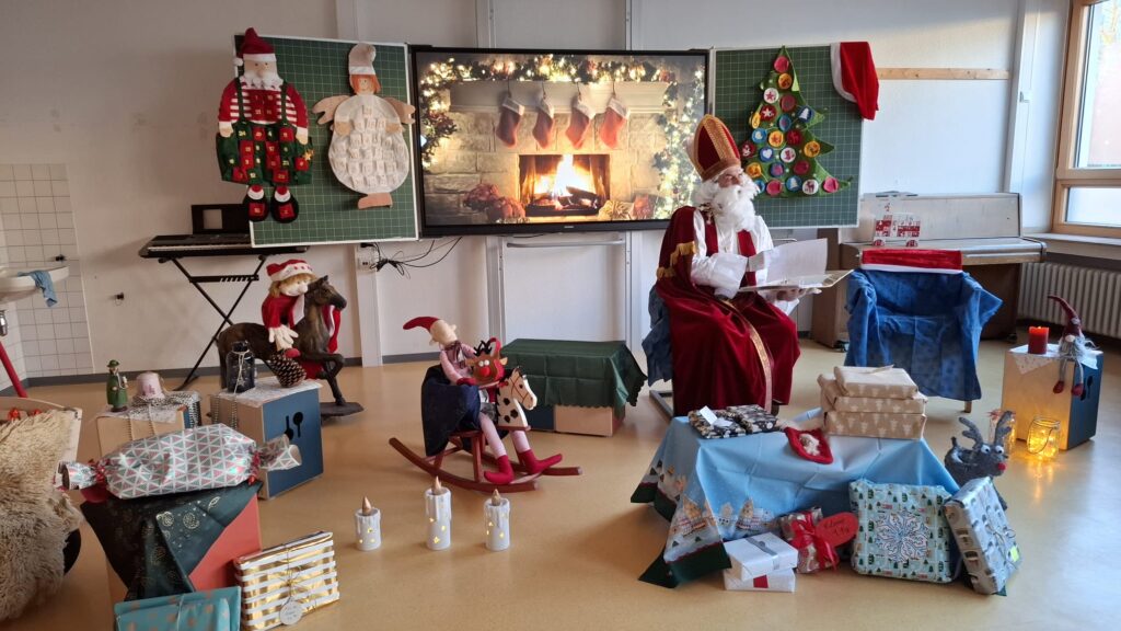 Am Donnerstag war der Nikolaus in der Schule. Es gab eine kleine, gemeinsame Feier und danach wurde jede Klasse nochmal einzeln beim Nikolaus empfangen. Die Kinder bekamen einen Schokonikolaus und die Klasse jeweils noch ein Klassengeschenk.